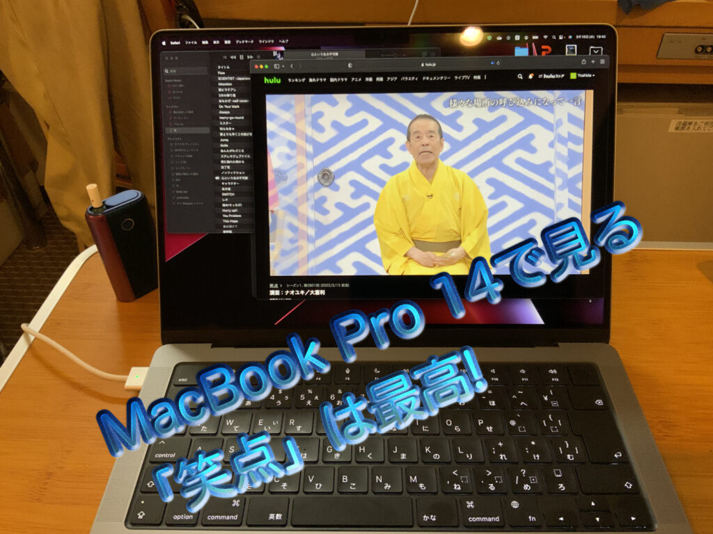 私は、購入後MacBook Pro 14を自慢するときに、「MacBook Pro 14で『笑点』見てみろ、感動するぜ!」と自慢します。みんな笑っていますが、本当に違うんだって・・・